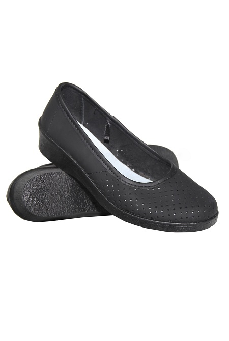 Туфли классической модели на сплошной танкетке. Натуральная кожа верха с перфорацией, обеспечивающей эффективный воздухообмен. Широкая, удобная колодка в носочной части. Эластичная и износоустойчивая подошва из ПВХ. Внутренняя стелька выполнена целиком из натуральной кожи. Легкие и удобные в эксплуатации. Модель может использоваться в сферах обслуживания и в повседневной носке.