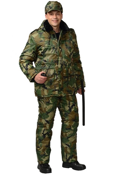 Куртка на молнию и ветрозащитным клапаном, съёмным капюшоном, накладными и прорезными карманами. Притачной меховой воротник, кулиска по линии талии, трикотажные манжеты внутри рукавов обеспечивают дополнительную теплозащиту. Полукомбинезон с центральной застёжкой-"молнией" и двумя боковыми накладными карманами.Тк. "Оксфорд", 100% п/э. Утеплитель: синтепон 150 гр/м2, в куртке 450 г/кв.м., в полукомбинезоне 300 г/кв.м. Подкладка: 100% п/э. Меховой воротник. ГОСТ 12.4.303-2016