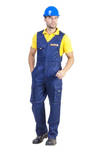 Полукомбинезон с высокой грудкой и спинкой, с широкой эластичной тесьмой в области плеч, с центральной застежкой на двухзамковую молнию. По линии талии проложена эластичная тесьма.
