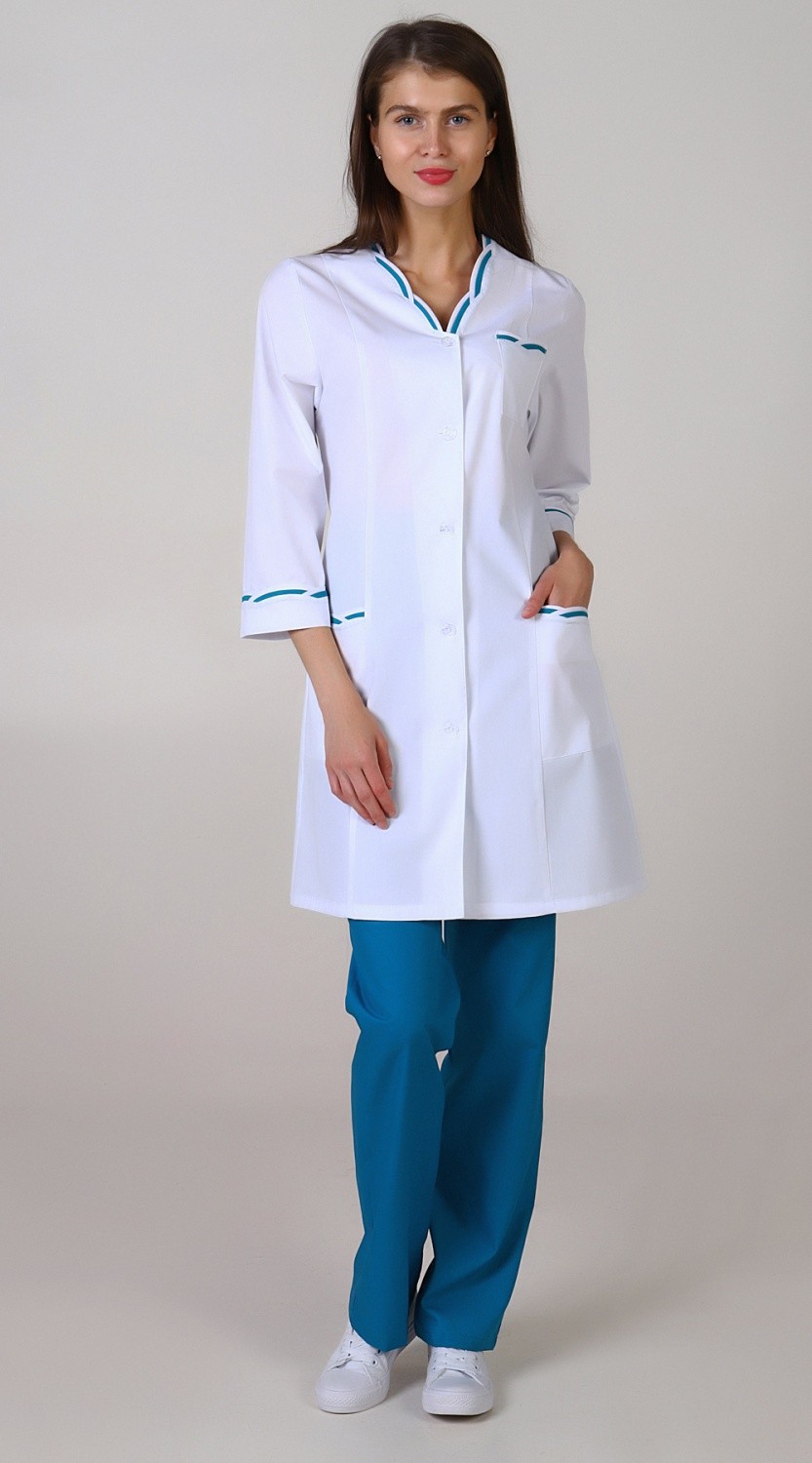 Костюм медицинский женский состоит из блузы и брюк.