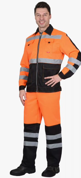 3 класс защиты. Тк. смесовая с ВО пропиткой. Куртка короткая, с центральной застежкой на «молнию», отложным воротником, притачным поясом с хлястиками по боковым сторонам, регулирующие ширину при помощи кнопок, верхними и нижними накладными карманами с клапанами, застёгивающимися на потайную ленту «контакт». Рукава втачные двухшовные с притачными манжетами на кнопках. Брюки с застёжкой гульфика на тесьму - «молния», притачным поясом застёгивающимся на кнопку, с 5-ю шлёвками – задняя широкая шлёвка, боковыми внутренними карманами, задним накладным карманом на правой половинке. Ширина СОП-50 мм. .