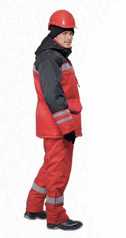 Костюм состоит из удлинненной куртки с капюшоном и брюк . Куртка. - Отстегивающийся и регулируемый капюшон. - Воротник- стойка - Центральная застежка на молнии с ветрозащитной планкой на кнопках,. - Талия регулируется кулиской - Боковые двойные карманы и нагрудные объемные накладные карманы с клапанами. на липе - Усиление в области локтей - Со световозвращающими полосами по полочке, спинке и рукавам. - С трикотажными напульсниками по низу рукава - Внутренний воротник и карманы утеплены флисом. Брюки. - С высоким поясом на регулируемых бретелях с эластичной лентой. - С пристегивающейся утепленной спинкой - С боковыми карманами - Со световозвращающими полосами по низу брюк
