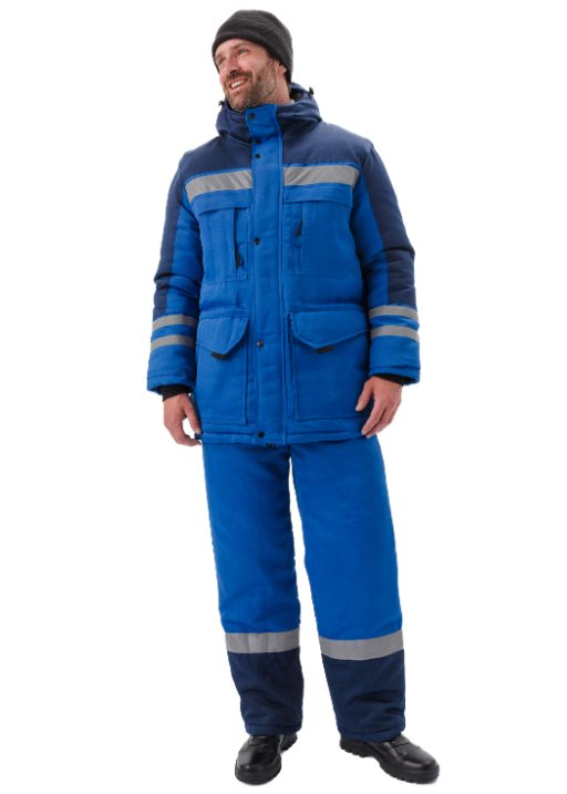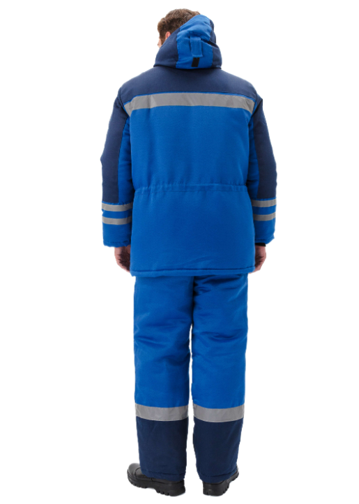 Костюм предназначен для эксплуатации в качестве спецодежды для защиты работающих в условиях пониженных температур воздуха 1-3 климатического пояса при выполнении работ в различных отраслях промышленности. Костюм состоит из куртки с пристегивающимся утепленным капюшоном и брюк с пристегивающейся утепленной спинкой с бретелями и широким поясом. Центральная застежка. Молния закрыта ветрозащитной планкой, застегивающейся на кнопки.