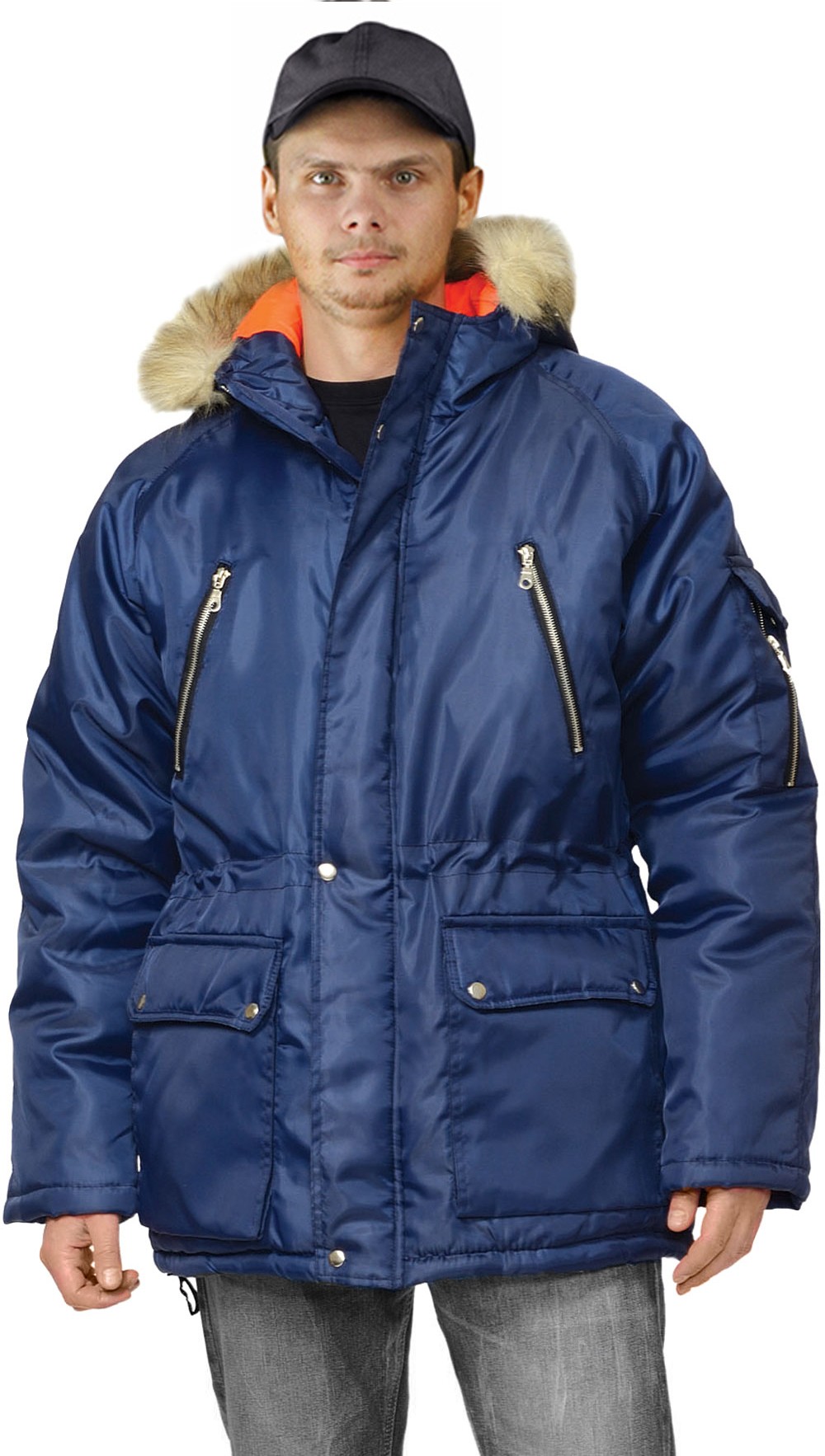 Куртка мужска, зимняя, прямого силуэта с центральной застежкой на тесьму-молнию и ветрозащитной планкой на кнопках