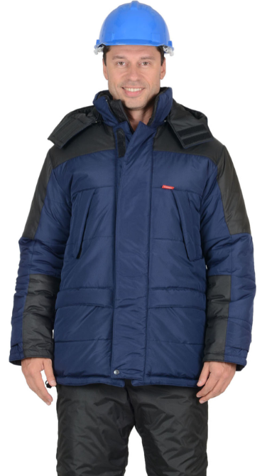 Куртка прямого силуэта; с горизонтальными строчками настрачивания слоя утеплителя на детали полочек, спинки, рукавов; воротник - «стойка»; с тесьмой «молния» по горловине, скрытой под планкой, для пристёгивания капюшона; с центральной бортовой застёжкой на двухзамковую тесьму «молния» и двумя внешними ветрозащитными клапанами, застёгивающимися на 4 текстильные застёжки «липучки» длиной 9,5см и одну кнопку, по низу планки; с внутренним ветрозащитным клапаном правой полочки (от верхнего края воротника до низа куртки), из ткани подкладка.