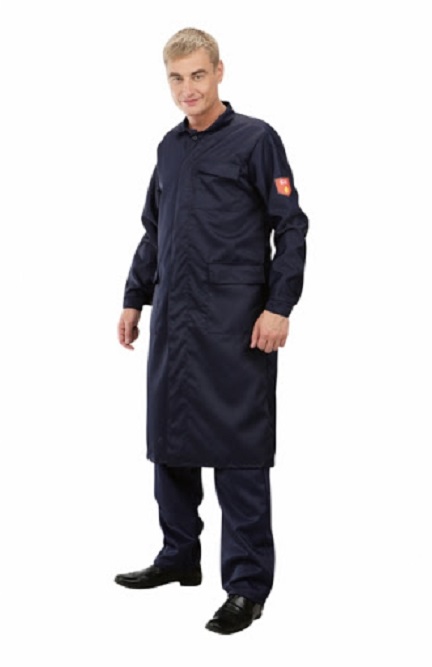 Защита от кислот до 80%. Халат с кокеткой, супатной застежкой на пуговицы, накладными карманами, отложным воротником.