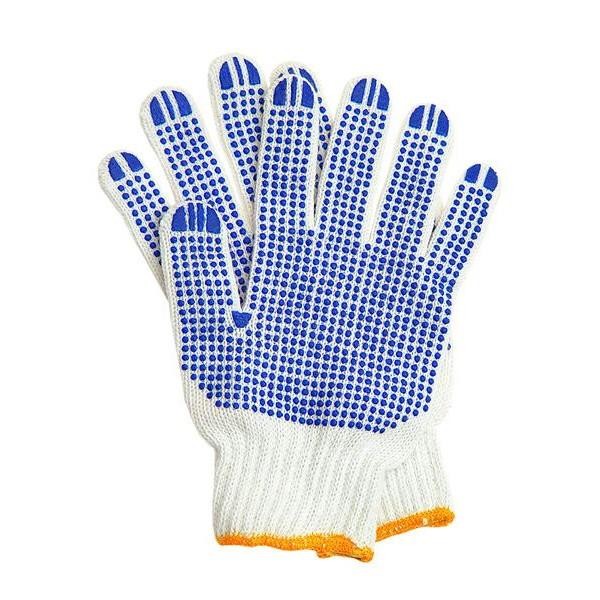Перчатки трикотажные с ПВХ-напылением в виде точек и эластичными манжетами. Х/б основа обеспечивает свободный воздухообмен. Предназначены для сельскохозяйственных работ, а также для точных ручных механосборочных работ, где необходим надежный захват детали или инструмента. Удобные и не стесняют движений пальцев.